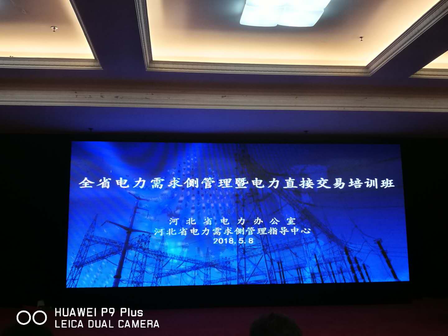 2018 年 5 月 7日-8日,秦皇島華電測(cè)控設(shè)備有限公司副總經(jīng)理兼新能源部門(mén)經(jīng)理岳曉虹及管理部經(jīng)理賀敏赴石家莊,參加了由河北省發(fā)展和改革委員會(huì)主辦的“全省電力需求側(cè)管理暨電力直接交易培訓(xùn)班”。