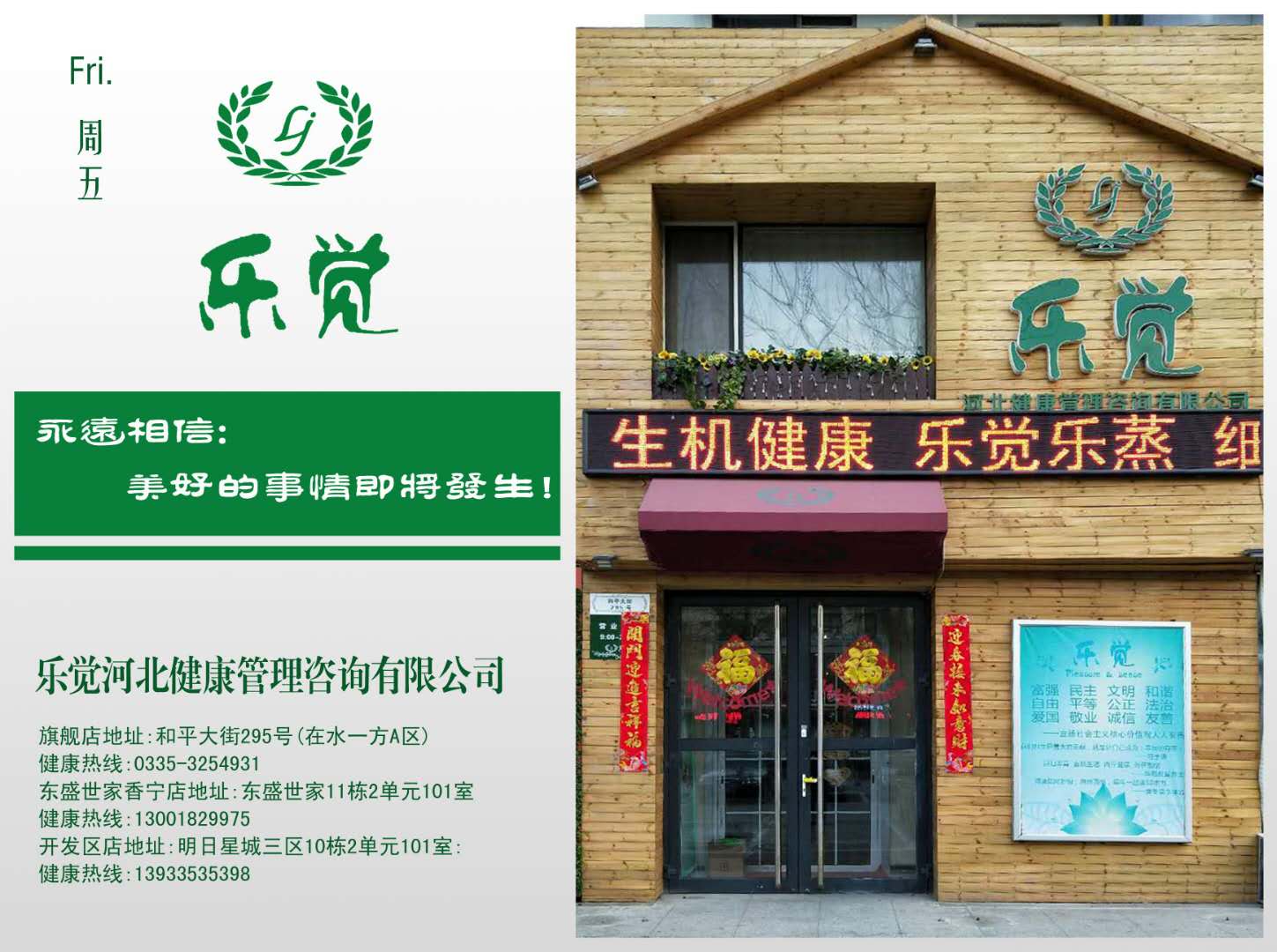 樂(lè)覺(jué)河北健康管理咨詢有限公司核心價(jià)值觀-“利眾生,度自己,愛(ài)是一切的解答”,每個(gè)人是自己健康的第一責(zé)任人,走在健康的路上我們?cè)概c你同行。