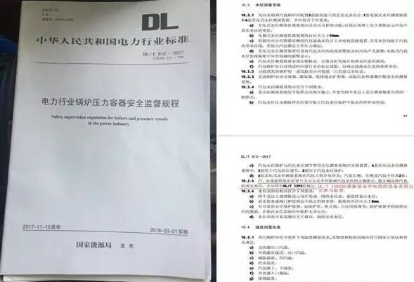 中華人民共和國電力行業(yè)標(biāo)準(zhǔn)《電力行業(yè)鍋爐壓力容器安全監(jiān)督規(guī)程》(DL/T 612-2017)(替代DL612-1996)于2017年11月15日由國家能源局發(fā)布,并于2018年3月1日實(shí)施。此規(guī)程規(guī)定了電力行業(yè)鍋爐壓力容器安全監(jiān)督要求,并在“10.安全保護(hù)裝置及儀表中10.3水位測量系統(tǒng)”引用了《火力發(fā)電廠鍋爐汽包水位測量系統(tǒng)技術(shù)規(guī)程》(DL/T1393-2014)部分內(nèi)容進(jìn)行系統(tǒng)闡述。