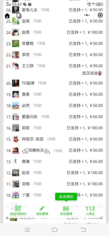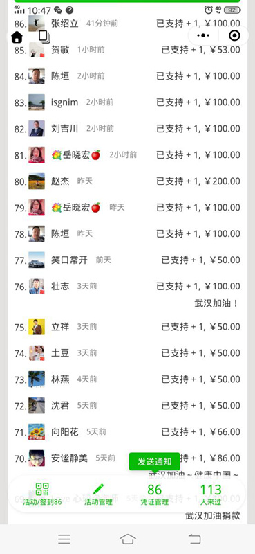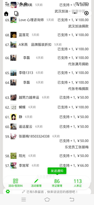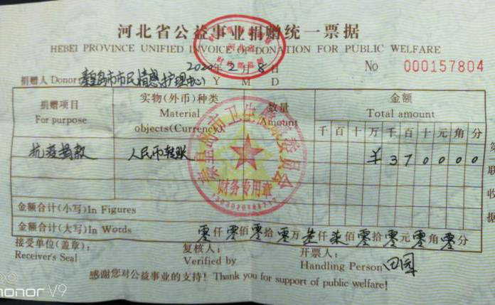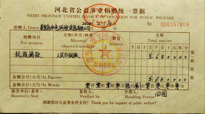 倡議發(fā)出后,得到了大家的積極響應(yīng),集團(tuán)員工、員工家屬、情感中心心理咨詢師、志愿者以及社會人士紛紛捐款,短短幾天共參與125人次,其中華控集團(tuán)黨支部、工會委員會募捐到6800元,情感中心募捐到3700元,共計募捐到了10500元。經(jīng)過大家的民主決議,我們將募集到的款項捐贈到秦皇島市應(yīng)對新型冠狀病毒感染的肺炎疫情工作領(lǐng)導(dǎo)小組辦公室提供的市衛(wèi)健委的賬戶上。