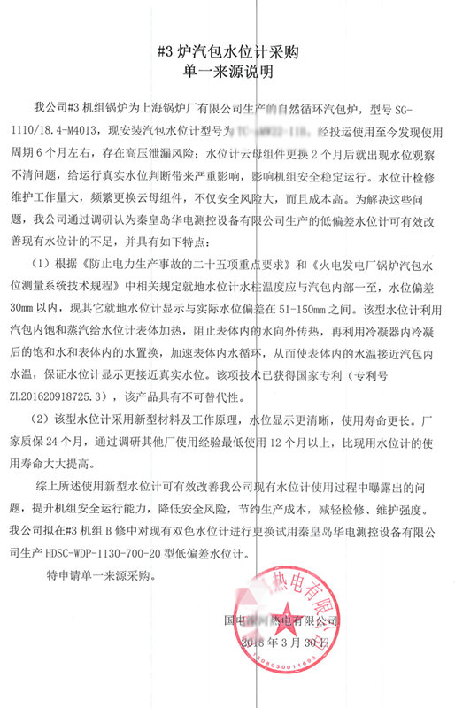該電廠擁有3臺300MW火力發(fā)電機組,2005年投產(chǎn)運行。由于汽包水位測量系統(tǒng)測量偏差較大,存在了嚴重的安全隱患。在2018年采用了我公司的專利產(chǎn)品高精度云母水位計后,解決了原有水位測量不準確的問題,為日后的安全運行工作帶來了保障。