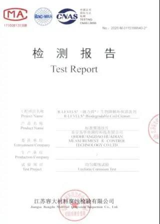 融力得®生物降解環(huán)保清洗劑除垢率優(yōu)于DL/T 957-2017《火力發(fā)電廠凝汽器管化學(xué)清洗及成膜導(dǎo)則》和DL/T 523-2017《化學(xué)清洗緩蝕劑應(yīng)用性能評(píng)價(jià)指導(dǎo)及試驗(yàn)方法》。清洗除垢效果顯著。
