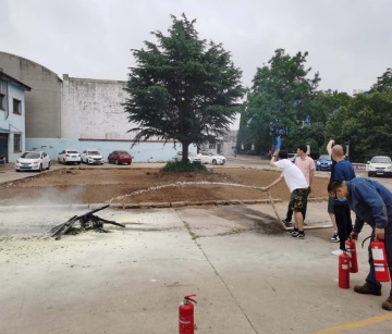 一陣急促的警報聲“著火啦”,拉開了“2020年應(yīng)急消防疏散演練”活動的帷幕。聽到警報聲,工作人員迅速到達指定地點指導(dǎo)大家彎著腰、捂住口鼻,迅速有序的撤離現(xiàn)場。隨后,在公司操場舉行了滅火演練。參加演練的“消防員”們迅速做出反應(yīng),拿起消防工具到達指定地點,同時消防水帶迅速展開并連接,大家服從指揮,熟練的使用滅火器和消防水將火撲滅。