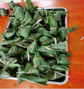在大家齊心協(xié)力的共同努力下,滿滿一盤子粽子很快就包完了。真是驗證了團結(jié)就是力量這個道理。