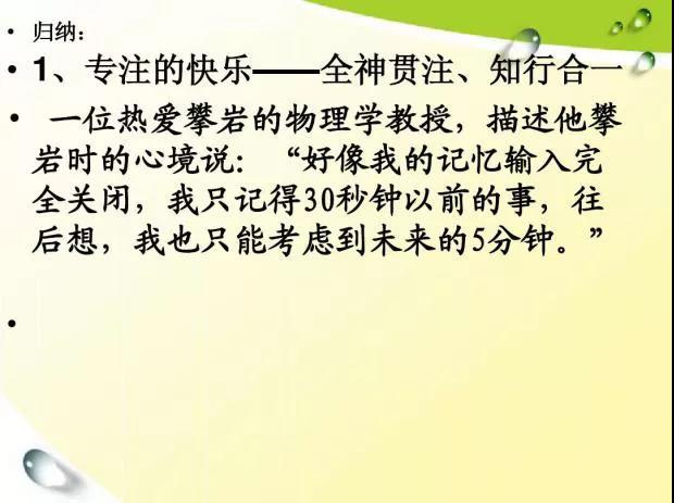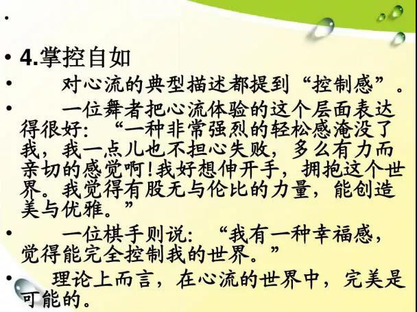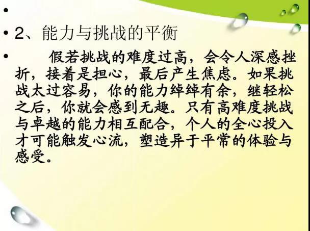 當(dāng)你全身心地投入某件事,達(dá)到忘我的程度,并由此獲得內(nèi)心的秩序與安寧時(shí),一種極大的滿足感悄悄地潛入了你的心,使你快樂(lè)。這就是我們今天要來(lái)學(xué)習(xí)和探討的“心流”體驗(yàn)。