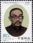 郵票是國家的名片。紀(jì)念郵票開設(shè)“中國共產(chǎn)黨早期領(lǐng)導(dǎo)人”系列,始自2001年,當(dāng)時是作為建黨80周年紀(jì)念活動的一項重要宣傳內(nèi)容。發(fā)行這個系列郵票的目的,不僅是重溫歷史,總結(jié)經(jīng)驗;也是弘揚(yáng)光榮傳統(tǒng),教育激勵后人。根據(jù)已知的資料,郵票上的這些歷史人物,都是選取的上世紀(jì)二十年代革命戰(zhàn)爭時期的“早期”形象,目光炯炯,英姿颯爽,有著獨(dú)具的個性氣質(zhì)和鮮明的時代特征。他們的英雄故事被廣為傳頌,他們的業(yè)績、他們的思想、他們的奮斗精神,值得后輩們很好地學(xué)習(xí)和發(fā)揚(yáng)。他們的不凡經(jīng)歷綜合起來,實際上就是一部鮮活的黨的早期革命斗爭史。發(fā)行紀(jì)念郵票,的確是非常有效的紀(jì)念方式之一。因此,國家郵政局于2001年6月28日發(fā)行《中國共產(chǎn)黨早期領(lǐng)導(dǎo)人(一)》郵票一套5枚。中國共產(chǎn)黨早期組織的創(chuàng)建者和早期領(lǐng)導(dǎo)人王燼美、趙世炎、鄧恩銘、蔡和森、何叔衡,就是這些千千萬萬個共產(chǎn)黨員中的杰出代表。這套郵票由王虎鳴設(shè)計,每枚面值80分。上一期我們通過郵票學(xué)習(xí)了一大代表王盡美的事跡,本期重點(diǎn)介紹黨史中的一大代表,為革命事業(yè)犧牲的先烈鄧恩銘、何叔衡。