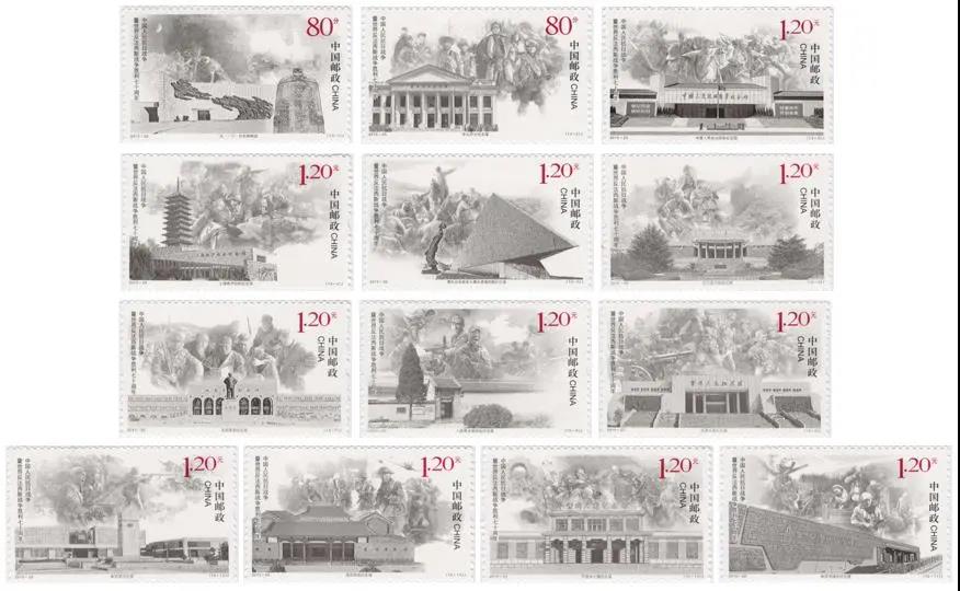 2015年9月3日上午,《中國人民抗日戰(zhàn)爭暨世界反法西斯戰(zhàn)爭勝利七十周年》紀念郵票首發(fā)式在西安市郵政公司舉行,本套郵票共13枚,小型張1枚。全套郵票面值為20.8元。《中國人民抗日戰(zhàn)爭暨世界反法西斯戰(zhàn)爭勝利七十周年》紀念郵票,是我國歷次紀念抗戰(zhàn)勝利題材郵票當中發(fā)行枚數(shù)最多的一套。郵票內(nèi)容分別為:1.“九一八”歷史博物館;2.東北烈士紀念館;3.中國人民抗日戰(zhàn)爭紀念館;4.上海淞滬抗戰(zhàn)紀念館;5.侵華日軍南京大屠殺遇難同胞紀念館;6.臺兒莊大戰(zhàn)紀念館;7.延安革命紀念館;8.八路軍總部舊址紀念館;9.百團大戰(zhàn)紀念館;10.平型關(guān)大捷紀念館;11.冉莊地道戰(zhàn)紀念館;12.新四軍紀念館;13.滇西抗戰(zhàn)紀念館。小型張畫面以《大刀進行曲》雕塑、長城、紅綢、和平鴿為主要元素,與中國人民抗日戰(zhàn)爭暨世界反法西斯戰(zhàn)爭勝利七十周年紀念活動標識相互呼應(yīng),融為一體。