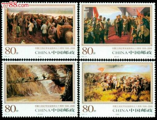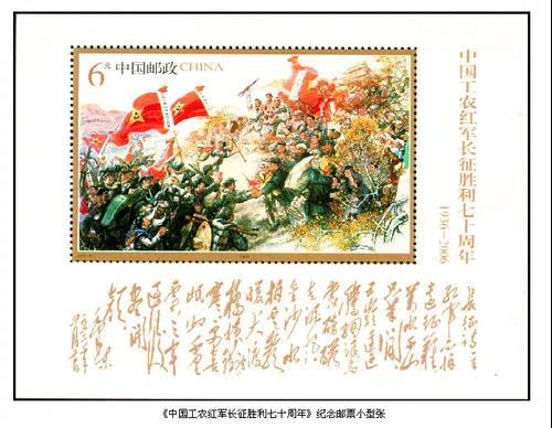 國家郵政局于2006年10月22日發(fā)行了《中國工農(nóng)紅軍長征勝利七十周年》紀(jì)念郵票1套4枚,小型張1枚。志號(hào):2006-25。全套面值:3.20元。設(shè) 計(jì) 者:郝旭東。
