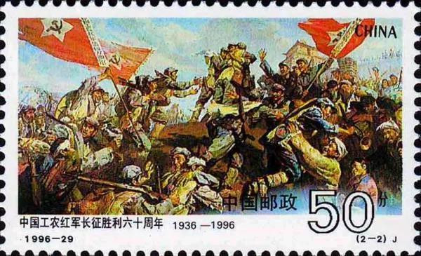 國家郵政局于1996年10月22日發(fā)行了《中國工農(nóng)紅軍長征勝利六十周年》紀(jì)念郵票1套2枚。