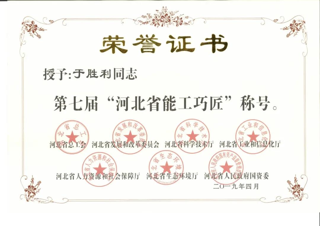 從剛參加工作的技術(shù)新人到擁有豐富經(jīng)驗的“總工”,于勝利一路走來,經(jīng)歷很多。作為一名共產(chǎn)黨員,他時刻不忘初心,時刻發(fā)揮黨員的先鋒帶頭作用,帶領(lǐng)班組成員提高創(chuàng)新研發(fā)技能,在崗期間,他主持研發(fā)的產(chǎn)品近五年已獲得兩項發(fā)明專利、兩項實用新型專利、一項美國發(fā)明專利,2016年榮獲第二屆“中國創(chuàng)翼”青年創(chuàng)業(yè)創(chuàng)新大賽銀翼獎,2017年被評為第五屆秦皇島市金牌工人,2018年榮獲河北省職工技術(shù)創(chuàng)新成果展演銀獎,2019年榮獲河北省第七屆能工巧匠稱號,2020年榮獲秦皇島市勞動模范等多項榮譽(yù),對于未來于勝利有著更深的思考和奮斗的目標(biāo)。