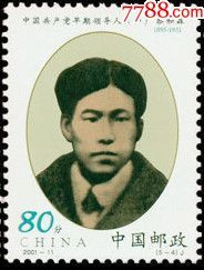 為紀(jì)念在解放全中國的革命事業(yè)中嘔心瀝血,英勇戰(zhàn)斗,壯烈犧牲的中國共產(chǎn)黨的無數(shù)英雄兒女,中國郵政在中國共產(chǎn)黨建黨80周年之際,發(fā)行了《中國共產(chǎn)黨早期領(lǐng)導(dǎo)人(一)》紀(jì)念郵票1套5枚,表達(dá)對革命先輩們的崇高敬仰。這是2001年6月28日發(fā)行的紀(jì)念郵票,設(shè)計者是王虎鳴。