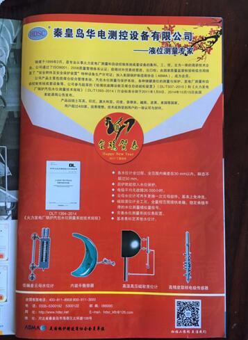 2017年1月,秦皇島華電測控設備有限公司與《熱力發(fā)電》雜志攜手,為打造權威交流平臺,在雜志上刊登我公司產(chǎn)品――汽包水位計系列。