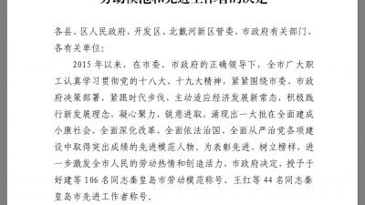 秦皇島市人民政府辦公室于2020年 1月3日向我公司下發(fā)《關(guān)于命名表彰2015-2019年度秦皇島市勞動(dòng)模范和先進(jìn)工作者的決定》,公司總工程師于勝利被評(píng)為秦皇島市勞動(dòng)模范。 我公司總工程師于勝利同志一直More