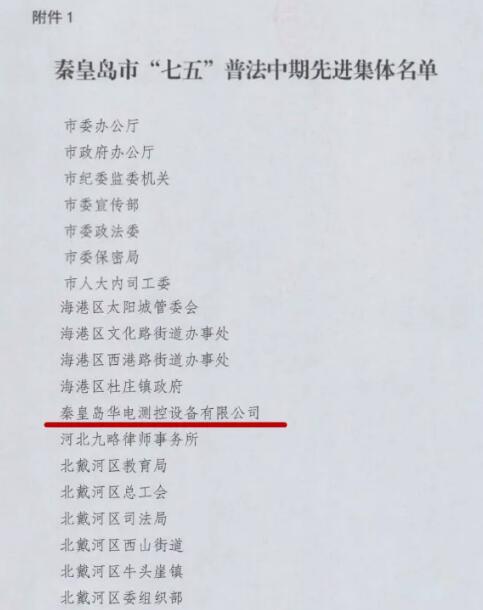 【企業(yè)要聞】華電測控集團被評為“七五”普法中期工作先進集體!